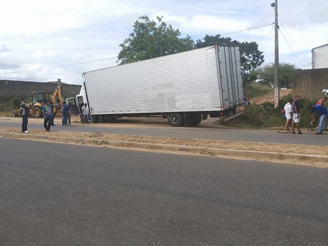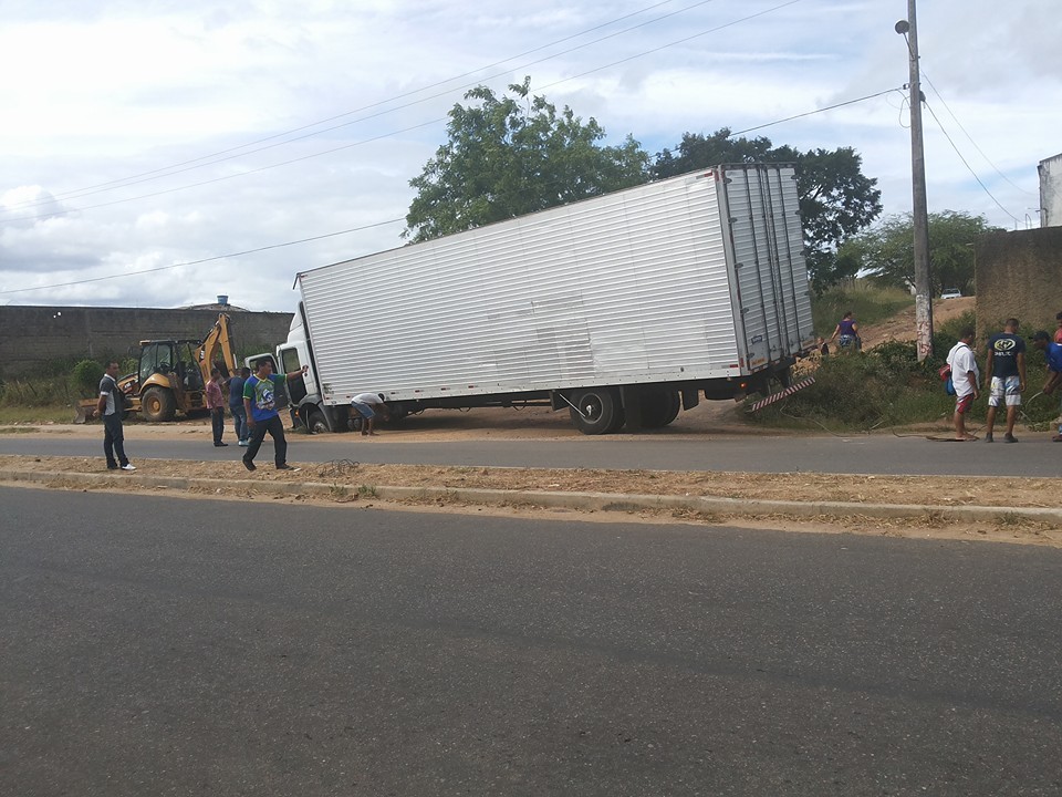 O motorista do caminhão, Adailson dos santos, trafegava pela avenida Júlio José Rodrigues, quando foi surpreendido por um bueiro sem a tampa. O bueiro estava coberto por um matagal, o que dificultou a visualização do motorista.