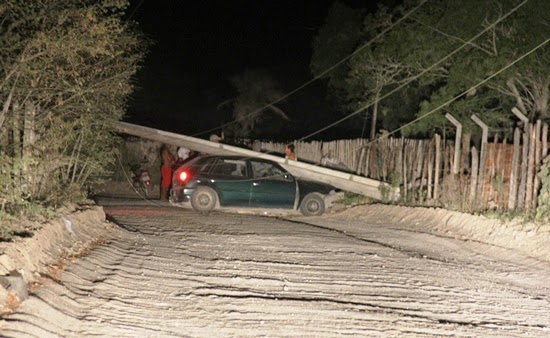 Ele perdeu o controle da direção do veículo Gol, licenciado de Conceição do Coité e bateu violentamente contra um poste, que caiu sobre o teto do carro, justamente no lado do condutor. O poste, que ficou preso a rede elétrica, puxou outro que ficava a cerca de 50 metros, que acabou quebrando também.