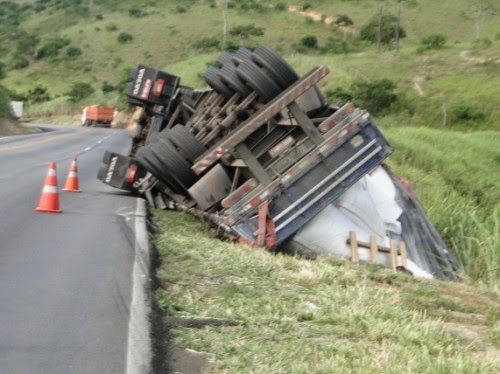 A Polícia Rodoviária Federal registrou o tombamento de uma carreta Volvo de placa MLP-6816, de Criciúma – SC, tombou na margem da pista quando trafegava no sentido Jequié/Jaguaquara, no Km 643, há 1 quilômetro do local onde ocorreu a batida com vítima fatal. O condutor do veiculo Volvo, que transportava uma carga de produto cerâmico, sofreu leves escoriações e foi socorrido por uma equipe da Concessionária ViaBahia.