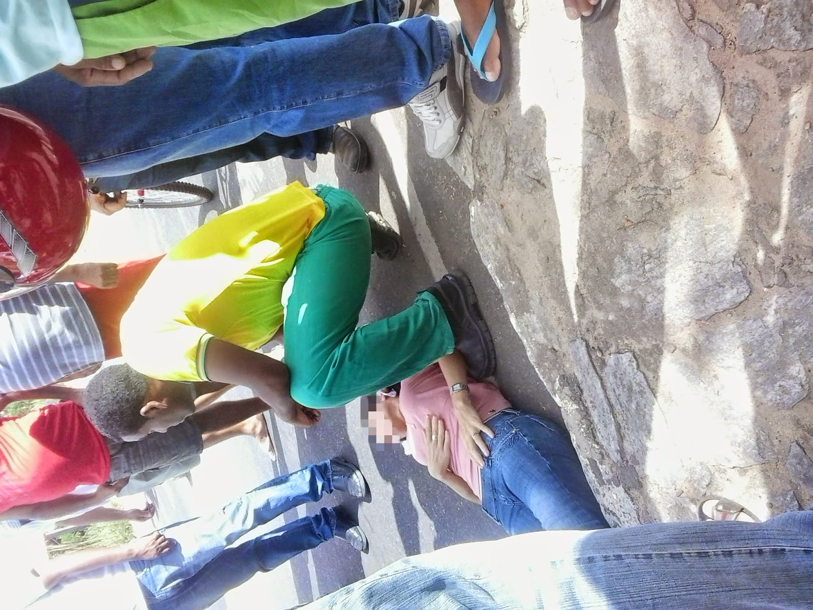 Por volta das 15:15 hs da tarde desta segunda-feira (26) uma mulher que não teve o nome revelado acabou sendo atropelada por uma bicicleta, em Itapetinga/ no Sudoeste da Bahia.Segundo informações uma mulher aparentando ter de 30 a 35 anos, atravessava a faixa de pedestres, na esquina entre a Avenida Cesar Borges e a Rotula dos Orixás, quando foi atingida por uma bicicleta. A mulher teria batido com a nuca no meio fio e ficou desorientada por algum tempo,momento em que chegaram a ajuda da PM (Policia Militar) a GM (Guarda Municipal) Comutran ( Coordenadoria Municipal De Transito ) e o SAMU (Serviço de Atendimento Médico de Urgência) onde os socorristas fizeram os primeiros procedimentos e em seguida levaram-na para o Pronto Socorro .No momento do acidente a Bike era conduzida por adolescente,que teve o braço ferido porém como supostamente estava ainda em choque,não quis ser atendido.O transito ficou paralisado nas duas vias de acesso,mas em conjunto entre Policia Militar,Guarda Municipal e Comutran,foi possível controlar sem maiores problemas.