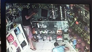 O Garupa desceu da moto empunhando uma arma de fogo, entrou na loja e anunciou o assalto. O Proprietário foi obrigado a se deitar no chão.