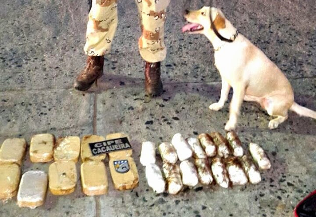 Em mais uma ação nesta terça-feira (10) policiais da Cipe Cacaueira e CIPRV Itabuna com ajuda de um cão farejador, apreenderam na BR 415, próximo a Ibicuí, 10 kg de crack e 7 kg de pasta base de cocaína.