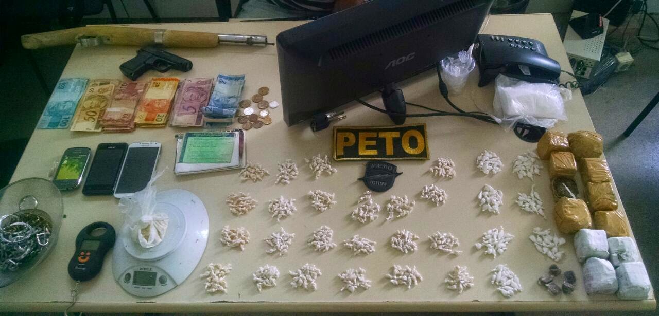 Os policiais ainda apreenderam na casa uma arma de fogo de fabricação artesanal e um simulacro de pistola.