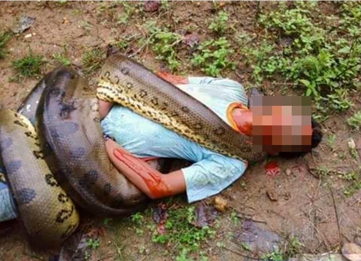 A cobra estava enrolada na Vítima, identificada com Emanoel da Cunha Lopes, de 30 anos, e Já estava Prestes a engolir o rapaz. Moradores ao verem a cena, partiram pra Cima e Mataram a sucuri, mas o rapaz Já estava morto, estrangulado e com os ossos do corpo quebrados.