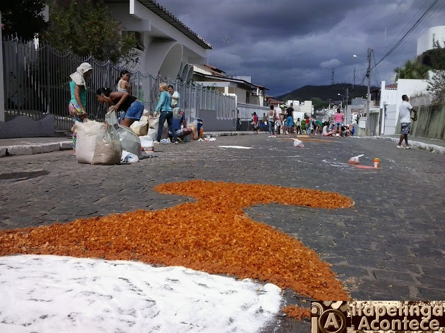 Começou hoje a preparação da decoração do “tapete de Corpus Christi, onde fiéis católicos das Igrejas de São José e Nossa Senhora das Graças estão nesse momento decorando as rua por onde passará procissão , que sairá da igreja das Graças na Concha Acústica, em direção a Igreja matriz de São José.