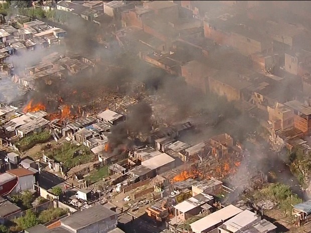 Às 9h, o fogo se alastrou rapidamente na área que passa por reintegração. No horário, havia ao menos três focos de incêndio, muito fogo e muita fumaça, mas sem registro de vítimas.