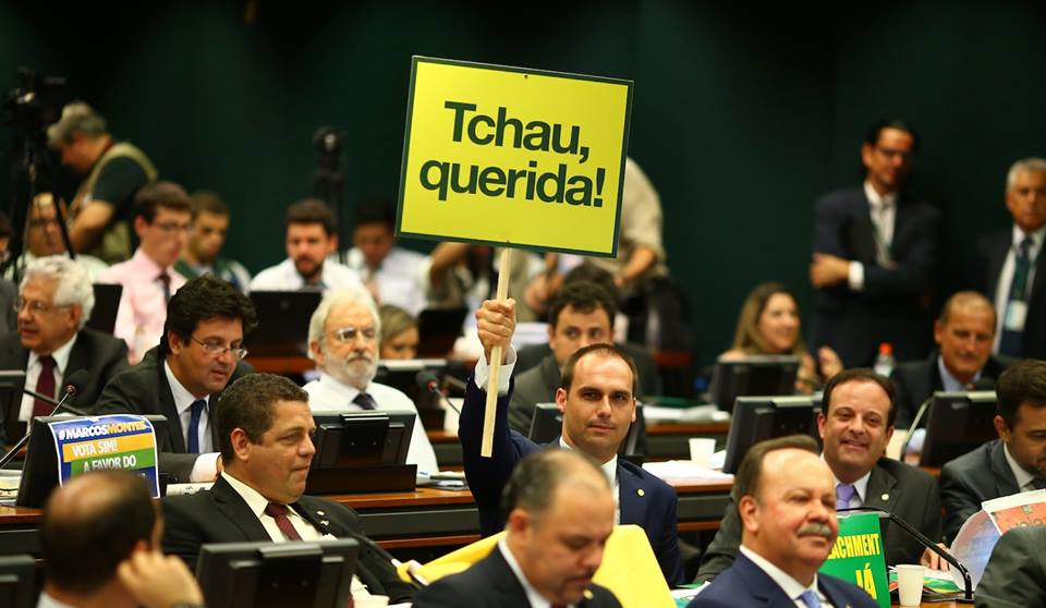 O cartar erguido pelo deputado Eduardo Bolsonaro cita uma expressão muito usada pela própria Dilma (Foto Dida Sampaio / AE)