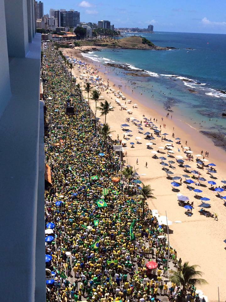Organizado pelos movimentos Vem Pra Rua, Brasil Livre (MBL) e União dos Jipeiros da Bahia (UJB), o ato estava marcado para as 16h, mas foi cancelado pela PM, que apontou problemas em relação à segurança dos manifestantes. No mesmo dia, ocorre no local, por volta das 9h, um ato contra o pedido de impeachment da presidente, organizado por grupos de esquerda e representantes dos movimentos sociais.