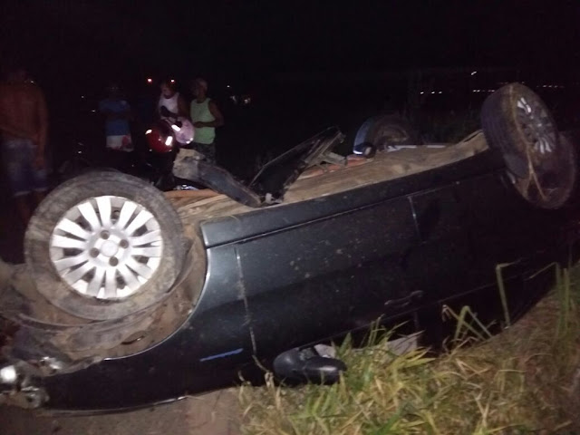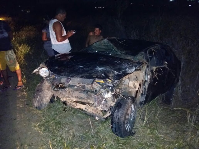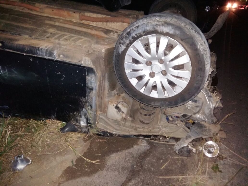 Com o capotamento o motorista foi arremessado para o banco de trás do veículo fazendo com que o condutor ficasse deitado no banco,saindo praticamente ileso apos o teto do carro ser atingido pelo solo.