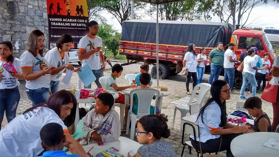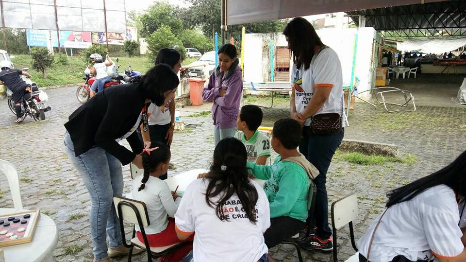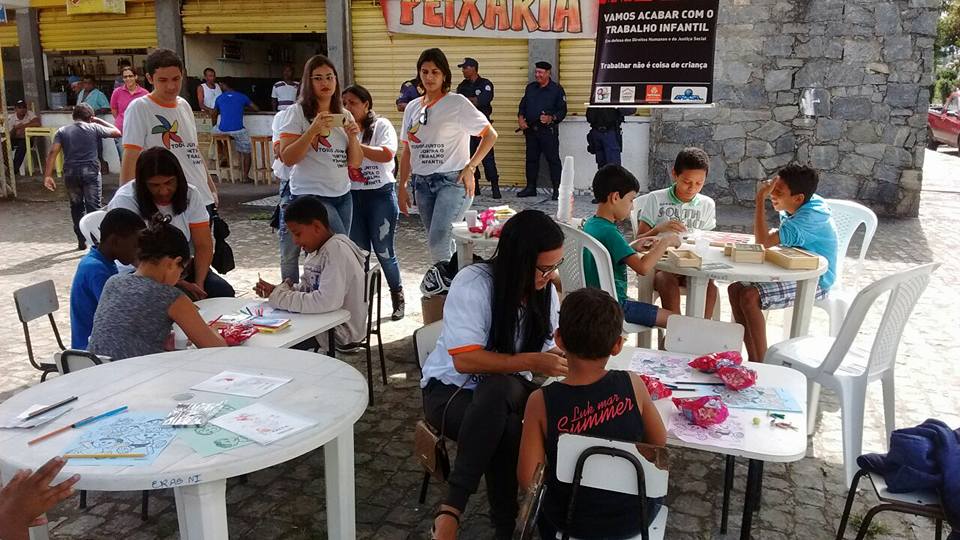 Assim, foi realizado panfletagem, abordagem pelo Conselho Tutelar e atividades lúdicas para as crianças chamando a atenção da comunidade sobre esse grave problema. Precisamos garantir os direitos da criança e do adolescente, entendo que o lugar da criança é na escola, aprendendo e se divertindo. E que a responsabilidade do sustento das famílias deve ser dos adultos.