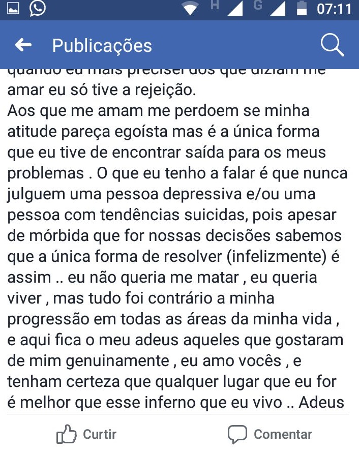 Não há informações sobre o que motivou o policial a tirar a própria vida, no entanto, ele escreveu um texto em sua página no Facebook se despedindo e lamentando sobre os problemas no seu cotidiando. Ao que tudo indica o policial estava com problemas de depressão.