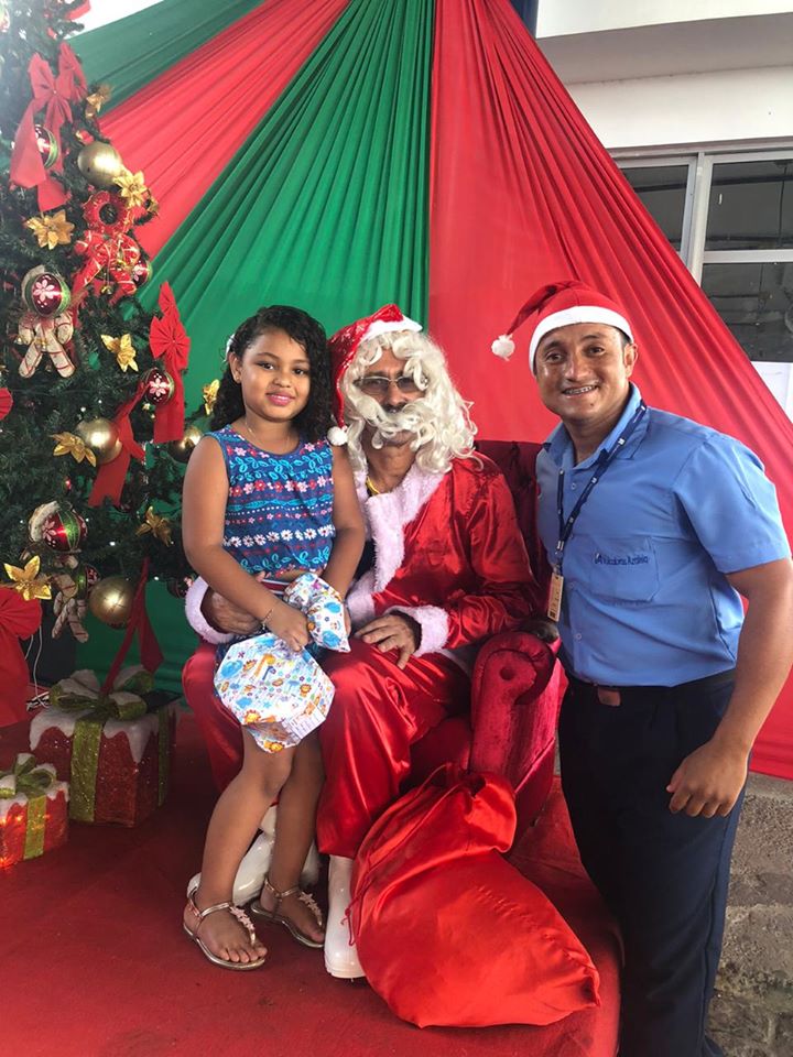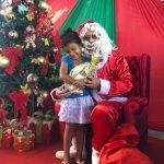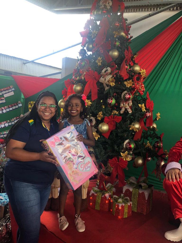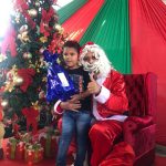As Crianças foram levadas até a fábrica e lá foram presenteadas pelo papai Noel que entregou a cada uma delas um presentes doado pelos funcionários da fábrica.