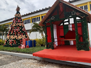 A decoração Natalina do Paço Municipal também tem a presença linda da casinha do papai Noel, onde todos podem se sentar na cadeira do velhinho e fazer as tradicionais fotos natalinas.
