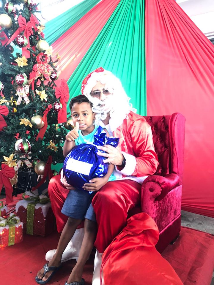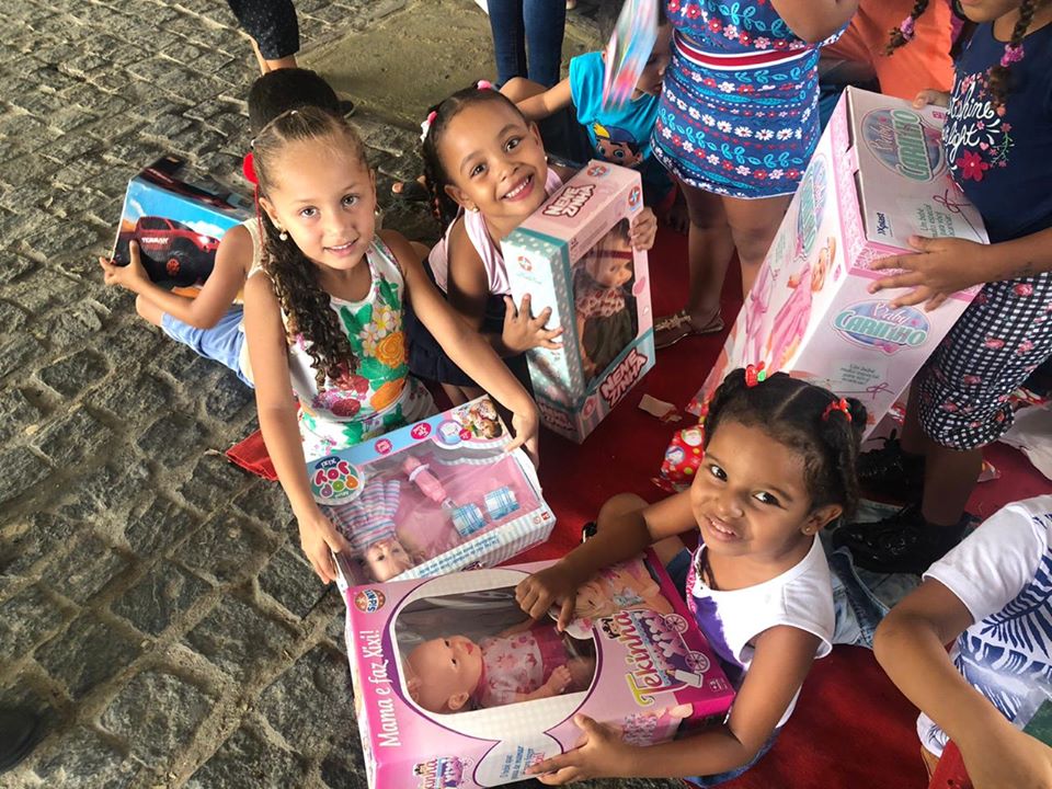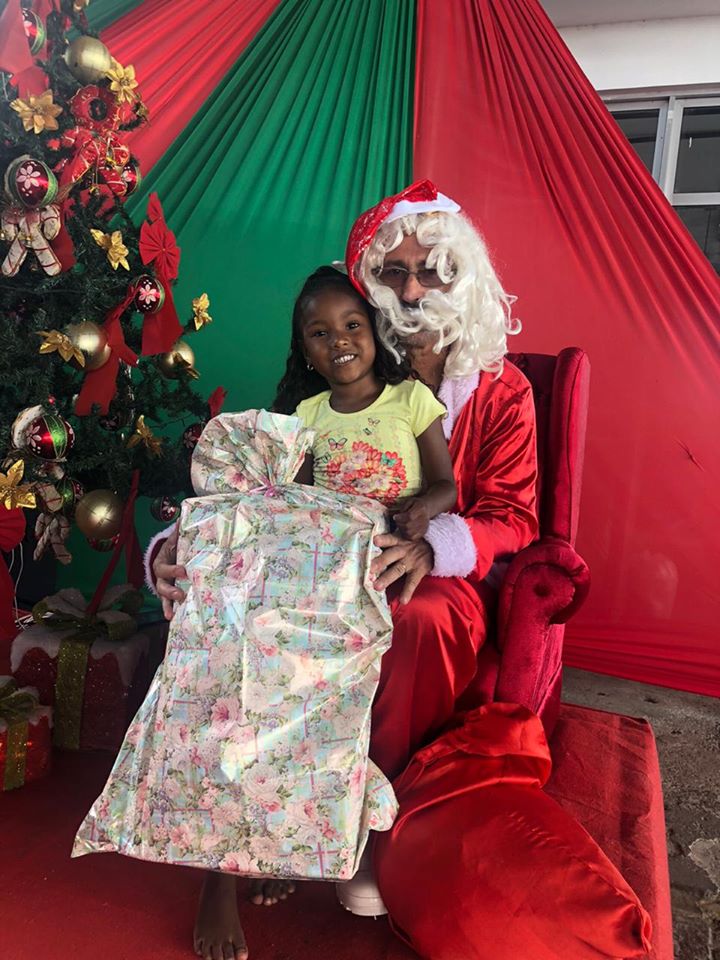 As Crianças foram levadas até a fábrica e lá foram presenteadas pelo papai Noel que entregou a cada uma delas um presentes doado pelos funcionários da fábrica.