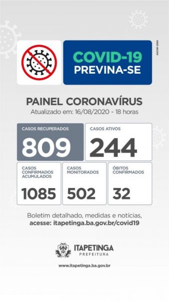 Agora, Itapetinga registra sua 33° morte. 830 pessoas foram curadas.