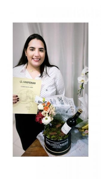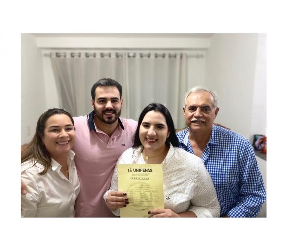 Aos 24 anos a jovem PAULA RIBEIRO DE BRITO que é filha de Alessandra e Edinho Borges e neta de Virgínia Brito, se doou aos estudos e se formou em Medicina na faculdade Unifenas BH no estado de Minas Gerais.