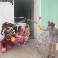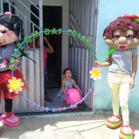 Pais e crianças se surpreenderam e ficaram super felizes de serem surpreendidos em casa com doces, lembranças e personagens que também levaram muitas alegrias.