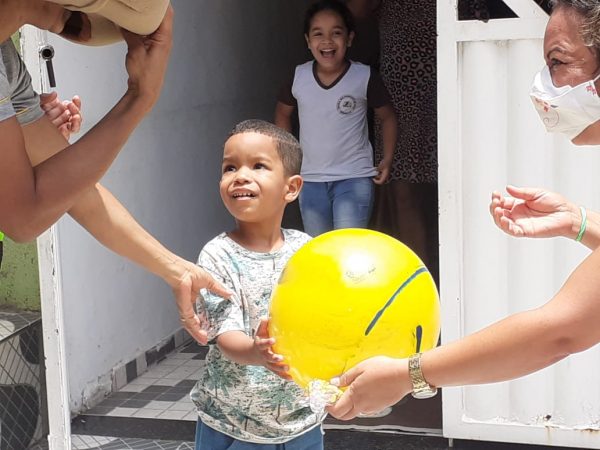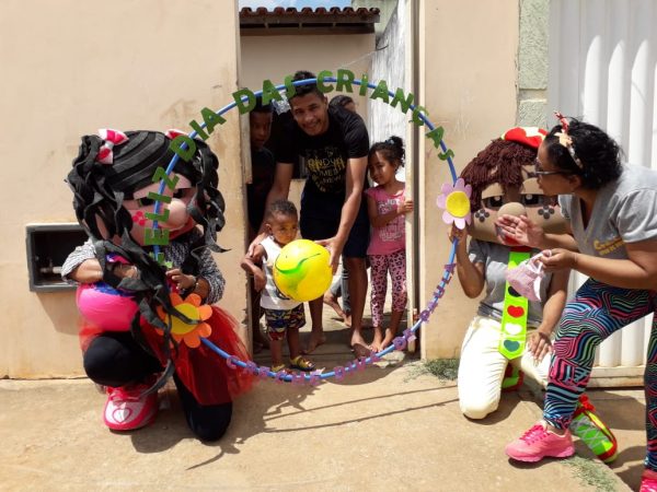 Pais e crianças se surpreenderam e ficaram super felizes de serem surpreendidos em casa com doces, lembranças e personagens que também levaram muitas alegrias.