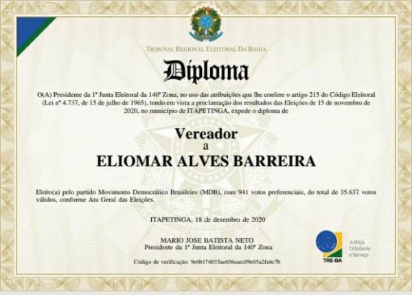 A Cerimônia Virtual de Diplomação da 140ª Zona Eleitoral, foi realizada por volta de 09:30h, com a participação RESTRITA da Justiça Eleitoral e Candidatos Eleitos.