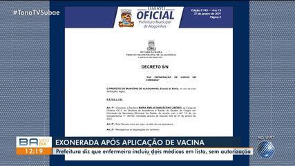 A prefeitura de Alagoinhas, cidade a cerca de 124 km de Salvador, exonerou uma servidora da saúde após denúncias de desvio de vacinas contra Covid-19. O órgão informou que a diretora de Assistência à Saúde pegou, sem autorização da Secretaria Municipal de Saúde (SMS), doses para vacinar dois médicos que não estavam na lista de prioridades.