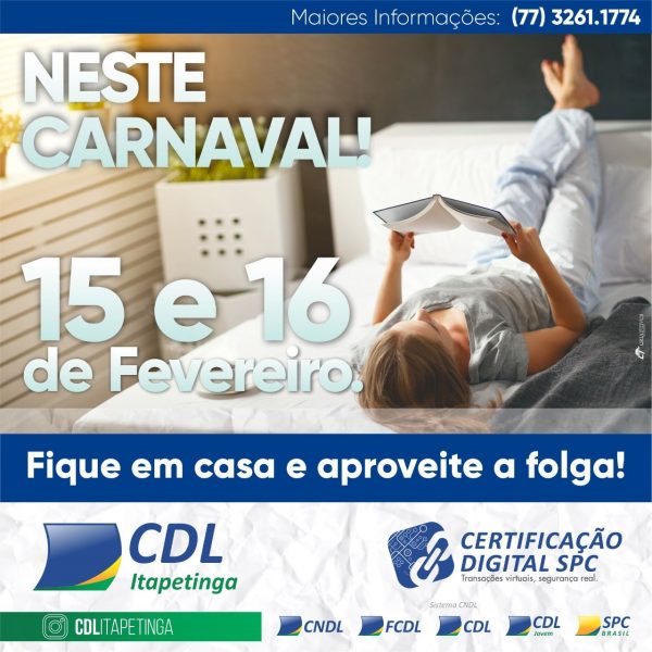A Câmara de Dirigentes Lojistas de Itapetinga e o Sindicato dos Empregados do Comércio de Itapetinga e Itororó, seguindo o disposto na Convenção Trabalhista, firmam acordo para fechamento do comércio nos dias 15 e 16 de fevereiro de 2021(Carnaval).