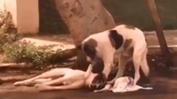 Dois vira-latas brancos com manchas pretas protagonizaram uma cena atípica no domingo (14), em Iguatu (CE), município a cerca de 370 km de Fortaleza. Um dos cães foi atropelado em via pública, enquanto o outro tentava resgatá-lo. Uma câmera flagrou a cena.