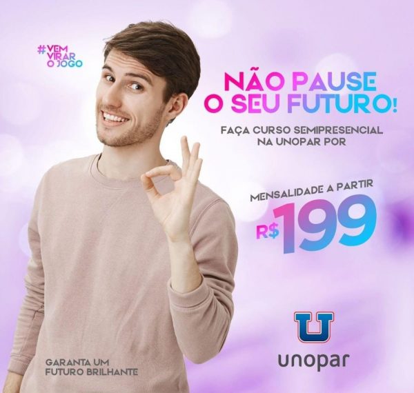 NÃO PAUSE O SEU FUTURO! FAÇA CURSO SEMIPRESENCIAL NA UNOPAR COM MENSALIDADES A PARTIR DE 199 REIAS
