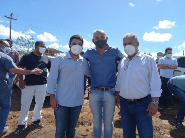 Na manhã de segunda-feira (12) por volta de 10:20h. momento em que o Prefeito Rodrigo Hagge apresentava à comitiva da Secretaria de Agricultura do Estado, a área do Distrito Industrial Municipal, que foi cedida para a implantação de um Frigorífico de aves, o vereador Eliomar Barreira (Tarugão) MDB teve a oportunidade de reunir Rodrigo Hagge e o Deputado Rosemberg Pinto.