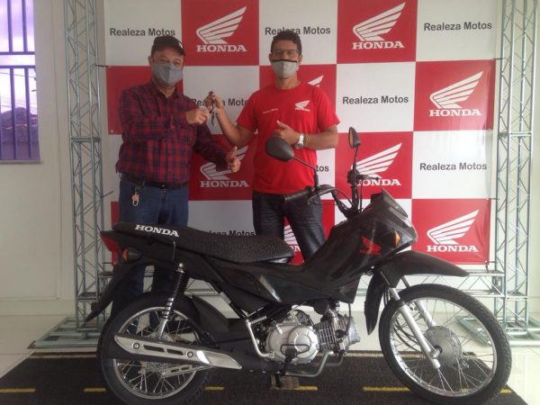 O diretor do SAAE, Airton Ferraz, foi receber a nova motocicleta, na Realeza Motos.