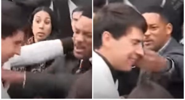 Will estava dando entrevistas no tapete vermelho quando o jornalista, em tom de brincadeira, o puxou na tentativa de dar um beijo nele. Surpreso, o ator deu um tapa no rosto do repórter e disse: “Qual é o seu problema?”. As pessoas que estavam ao redor reagiram à atitude de Will.