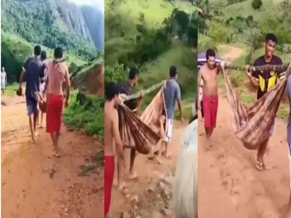 Para auxiliar a paciente, vizinhos a colocaram em uma rede e a carregaram durante todo o trajeto de estrada de terra, por onde a ambulância não conseguiu passar. A situação foi registrada por outros moradores e o vídeo foi divulgado nas redes sociais.