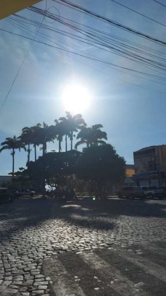 Itororó com temperatura mínima de 22º e máxima de 29º e 2mm de chuva. Sol com algumas nuvens. Não chove