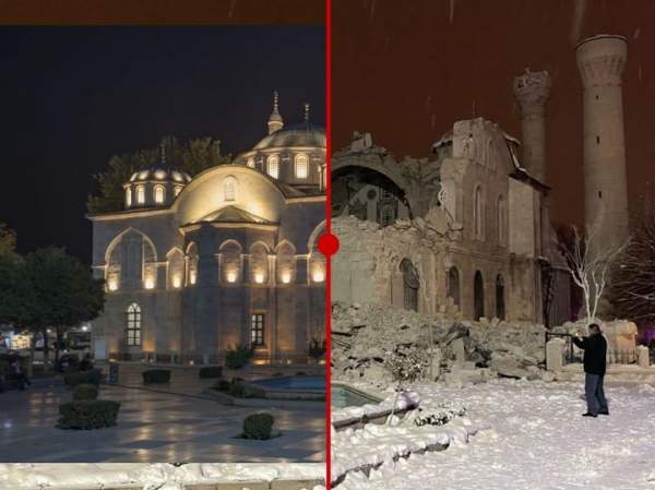 O terremoto de magnitude 7,8 que atingiu Turquia e Síria na madrugada desta segunda-feira (6) destruiu uma mesquita histórica na cidade turca de Malatya.