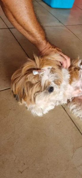 O conhecido Eletricista Nenzão, encontrou uma Cadelinha da raça Yorkshire na Av. Palmeiras no bairro Morumbi. A Cadelinha estava perdida nas proximidades do antigo Clube BNB.