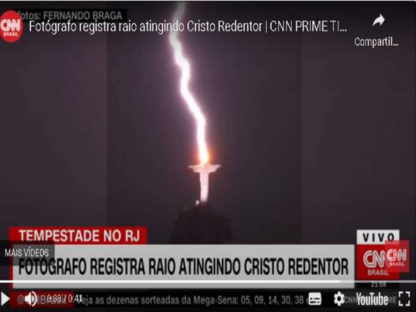 IMPRESSIONANTE! CRISTO REDENTOR É ATINGIDO POR RAIO
