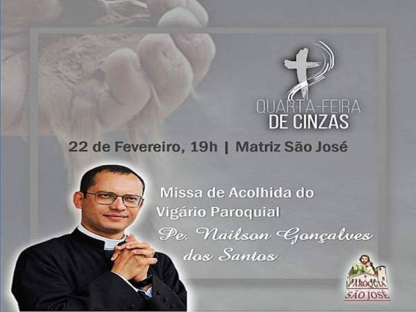 Celebração das Cinzas e também Missa de Acolhida na Paróquia São José do novo Vigário Paroquial, Pe. Nailson Gonçalves dos Santos.