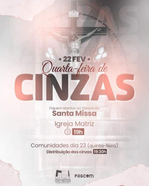 ITAPETINGA: PROGRAMAÇÃO DA IGREJA CATÓLICA DE ITAPETINGA PARA QUARTA-FEIRA DE CINZAS