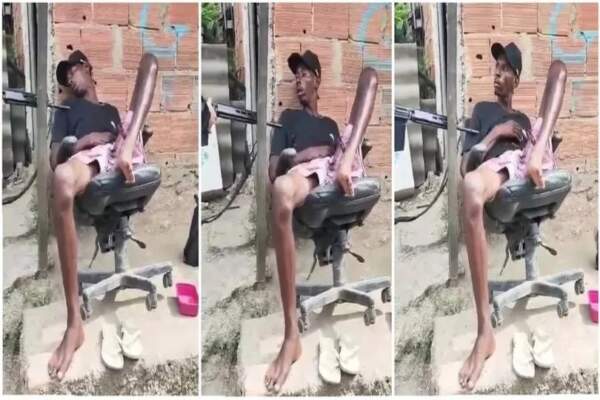 O homem, identificado como Lucas da Silva Pequeno, 30 anos, descansava em uma cadeira, encostando a cabeça na parede de uma casa, na Rua Tocantins, sem perceber a aproximação da equipe.