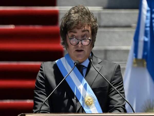 “Hoje começa uma nova era na Argentina, uma era de paz e prosperidade, uma era de crescimento e desenvolvimento, uma era de liberdade e progresso”, disse Milei em um discurso nas escadas do Congresso, diante de seus apoiadores reunidos na praça em frente ao edifício. “Nenhum governo recebeu uma herança pior do que a que estamos recebendo”, acrescentou.