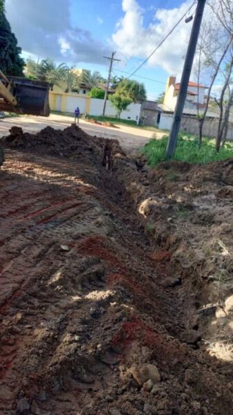 Agora, estamos executando as obras da primeira etapa de extensão das redes de esgotamento sanitário no Bairro Recanto da Colina, nas proximidades da Clínica SARE, acabando assim com o problema de mal cheiro, moscas, pernilongos, insetos e esgoto a céu aberto, que tanto incomoda aos moradores.