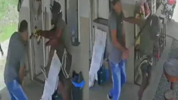 O vídeo mostra um homem aproximando com um facão para impedir o indivíduo de cometer o ato, quando um golpe certeiro na mão do ladrão arrancou o membro do corpo sendo decepada totalmente e caindo ao chão.