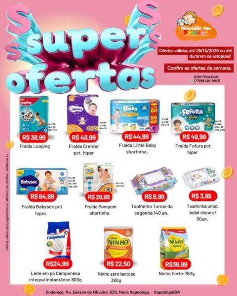 ITAPETINGA: ATACADÃO DAS FRALDAS LANÇA SUPER OFERTAS, CONFIRA!!!