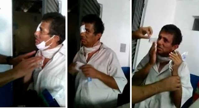 “O senhor vai ser conduzido à delegacia para registro, porque não se pode fazer esse tipo de coisa”, afirma o policial no vídeo. “Pode observar, no olho dele não tem nada. Ele está usando desses artifícios para ludibriar as pessoas, para angariar dinheiro.”
