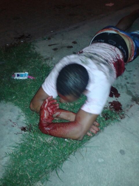 A vítima perdeu muito sangue, fraturou o punho esquerdo e mesmo bastante debilitado, permanecia consciente.