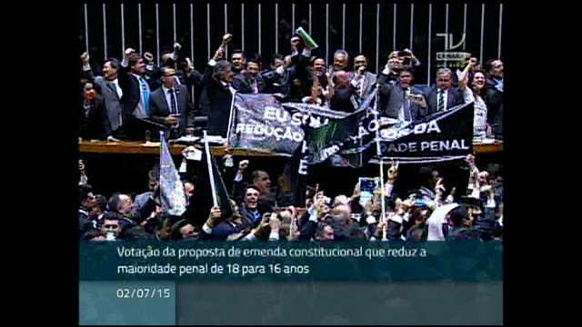 Após polêmica sobre a validade da votação e com as galerias do plenário vazias, a Câmara dos Deputados aprovou na madrugada desta quinta-feira (2) proposta de emenda à Constituição (PEC) que reduz de 18 para 16 anos a maioridade penal para crimes hediondos, homicídio doloso, e lesão corporal seguida de morte. O texto ainda precisa ser votado em segundo turno antes de seguir para o Senado.