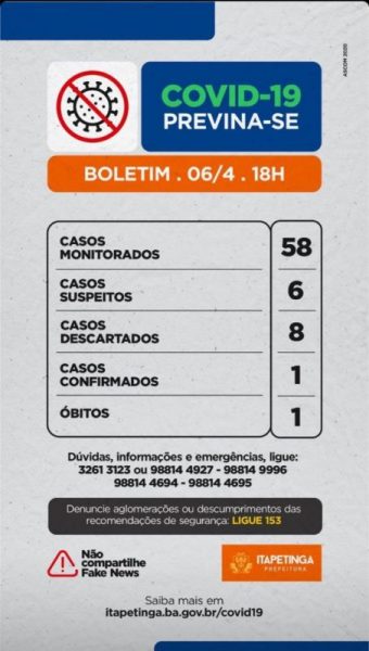 A secretaria de Saúde de Itapetinga recebeu do Lacen, Laboratório Central, o resultado do exame do pedreiro Roberto Brito da Silva, 47 anos. O pedreiro foi atendido na sexta-feira, 03, pelo Dr. José Roberto e encaminhado para internação no Hospital Cristo Redentor com suspeita de Meningite viral.