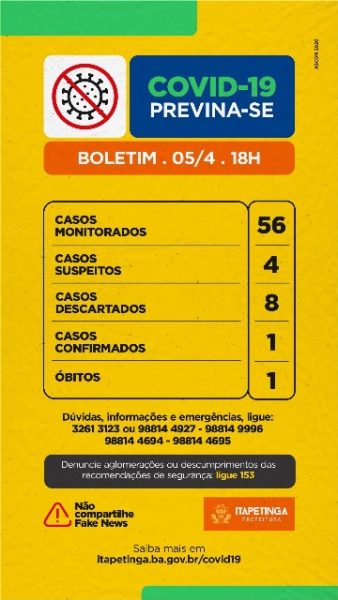 De acordo com os autores, o levantamento foi encaminhado à Secretaria de Saúde do Estado da Bahia(Sesab) de modo a abalizar ações de enfrentamento à pandemia.
