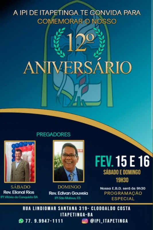 Na noite do última sexta 07 de fevereiro ás 19h foi realizado no Auditório da Universidade Federal da Bahia (UFBA) Campus Anísio Texeira em Vitória da Conquista, o Culto Ecumênico da formanda em Psicologia, Hemylle Oliveira Souza Rocha e no sábado 08 foi realizado a colação de grau no Mediterrâneo Complexo para Eventos em Conquista.