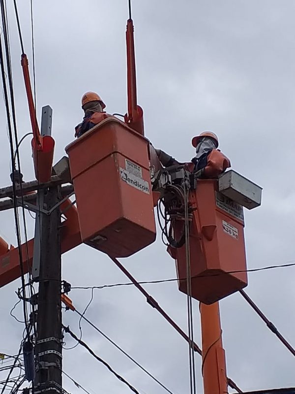 Os técnicos isolaram a área e começaram o serviço com previsão de conclusão por volta das 16:30h, podendo se estender um pouco mais. O Vereador Tarugão está acompanhando o serviço e desde já agradece a compreensão e colaboração dos Técnicos e da Coelba.