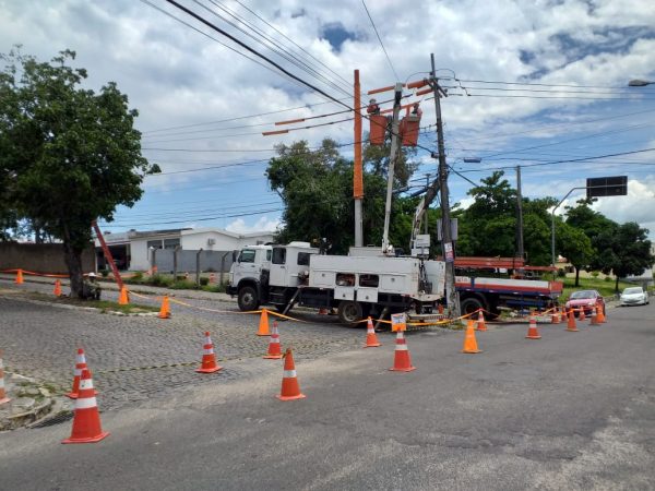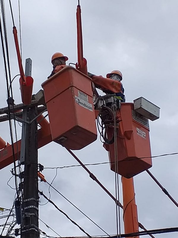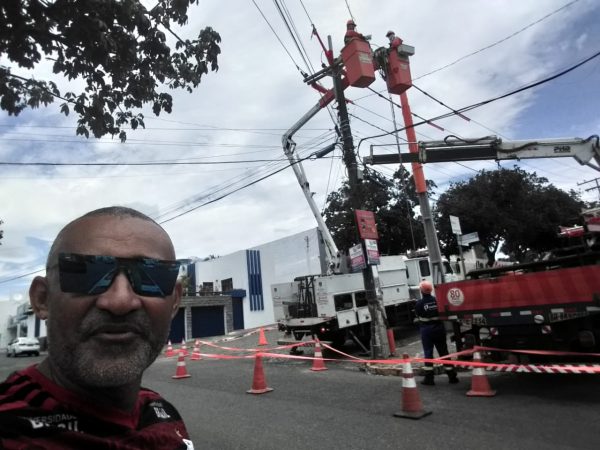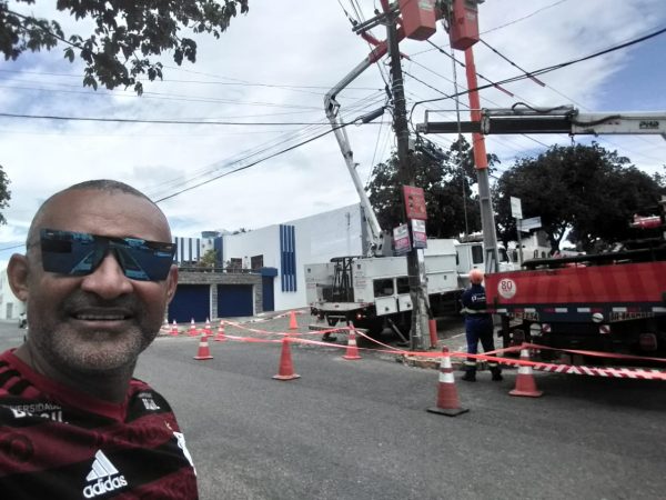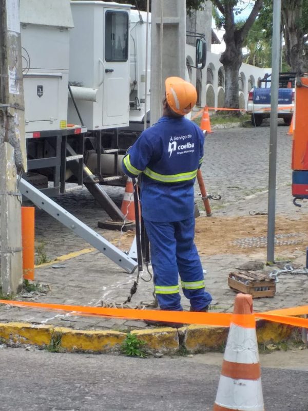 Os técnicos isolaram a área e começaram o serviço com previsão de conclusão por volta das 16:30h, podendo se estender um pouco mais. O Vereador Tarugão está acompanhando o serviço e desde já agradece a compreensão e colaboração dos Técnicos e da Coelba.